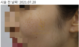 본 사진은 고객분의 동의를 받았으며, 어떠한 보정작업도 하지 않았습니다.해당시술로 인한 색소침착, 모낭염, 붉음증, 가려움 등의 부작용이 있을수도 있습니다.    대개 기미를 주소로 오시는 분은 양측 광대에 기미 뿐만 아니라 점잡티와 같은 표재성 색소와 편평사마귀와같은..