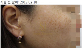 본 사진은 고객분의 동의를 받았으며, 어떠한 보정작업도 하지 않았습니다.해당시술로 인한 색소침착, 모낭염, 붉음증, 가려움 등의 부작용이 있을수도 있습니다.     기미와 점잡티, 흑자등의 표재성 색소가 혼재되어 있는 경우 단순 나노초 엔디야그 토닝만으로는 만..