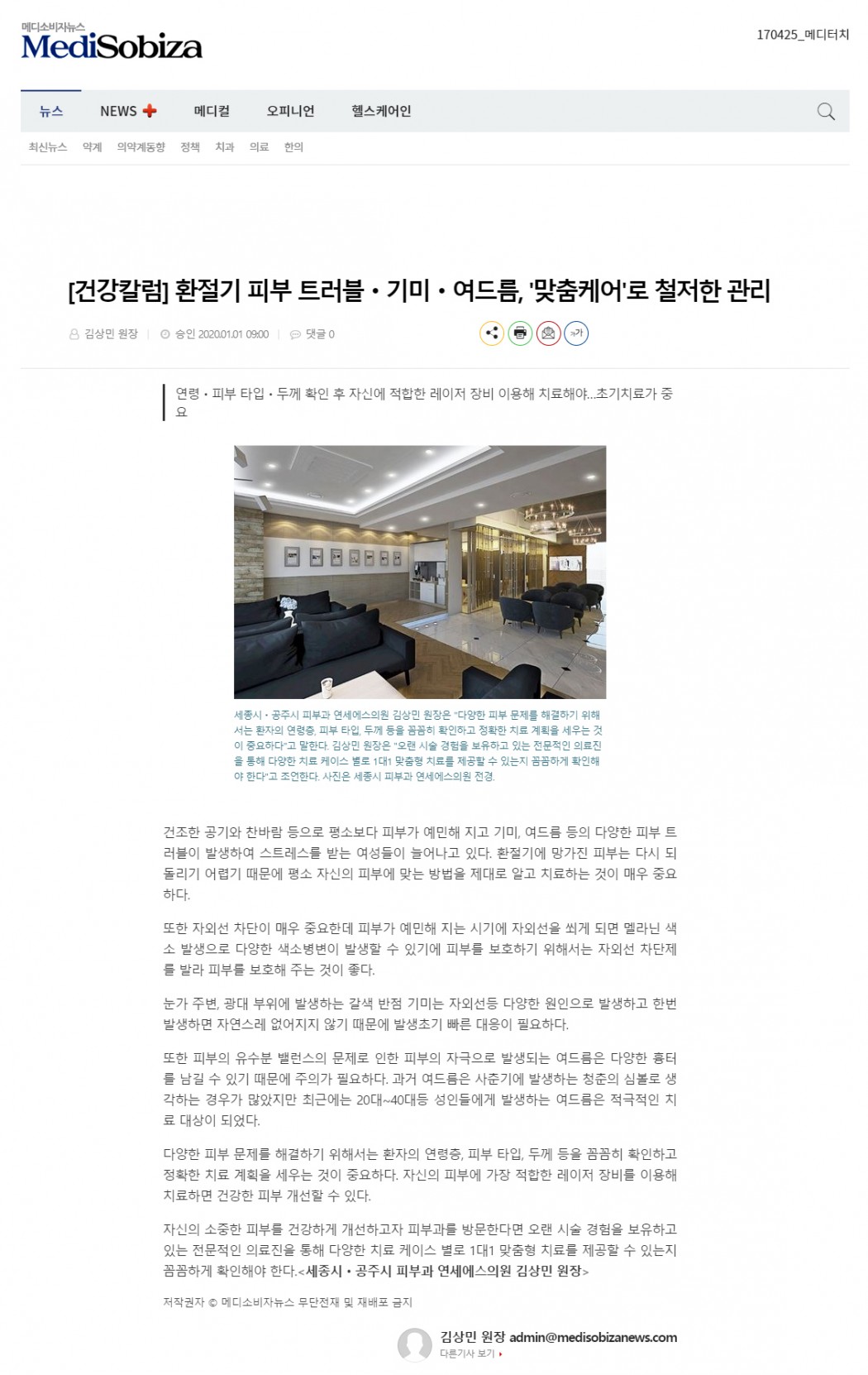 인쇄하기/글자확대.축소 기본 크게 더크게 인쇄 스크랩 목록보기 [건강칼럼] 환절기 피부 트러블, 기미, 여드름 '맞춤케어'로 철저한 관리 페이지 정보 작성자연세S클리닉 작성일2020-01-02 11:46:20 조회3,089 댓글0 본문 인쇄하기/글자확대.축소 기본 크게 더크게 인쇄 스크랩 목록보기 이전글 ▲[칼럼] 여드름 치료, 생활습관 등 종합적 원인 분석 뒷받침돼야 다음글 ▼[칼럼] 여드름 방치하면 흉터될 수 있어 "피부과 조기치료 중요" 댓글목록 등록된 댓글이 없습니다. 이전글 다음글 목록보기