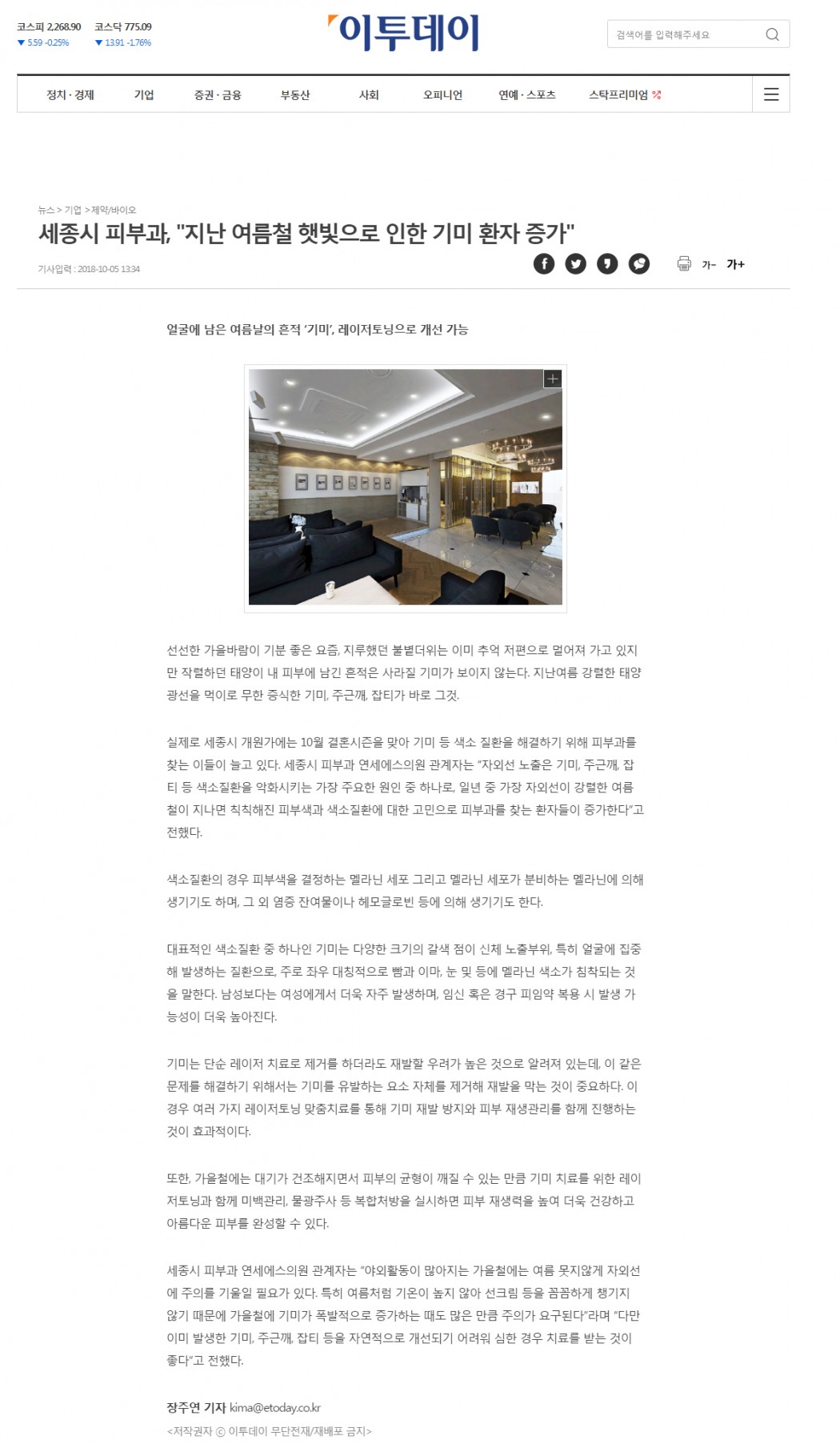 인쇄하기/글자확대.축소 기본 크게 더크게 인쇄 스크랩 목록보기 세종시 피부과, "지난 여름철 햇빛으로 인한 기미 환자 증가" 페이지 정보 작성자연세S클리닉 작성일2018-10-05 15:27:24 조회3,451 댓글0 본문 인쇄하기/글자확대.축소 기본 크게 더크게 인쇄 스크랩 목록보기 이전글 ▲세종시 피부과에서 말하는 여드름-기미 주근깨 색소질환 다음글 ▼늦여름도 뜨겁다...지친 피부를 위한 피구과의 처방전 댓글목록 등록된 댓글이 없습니다. 이전글 다음글 목록보기