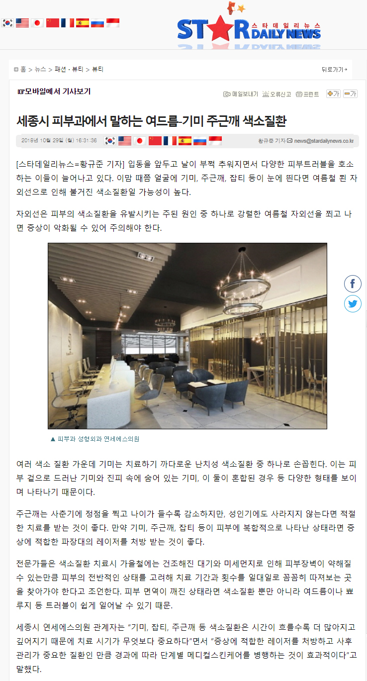 인쇄하기/글자확대.축소 기본 크게 더크게 인쇄 스크랩 목록보기 세종시 피부과에서 말하는 여드름-기미 주근깨 색소질환 페이지 정보 작성자연세S클리닉 작성일2018-10-29 17:11:55 조회3,257 댓글0 본문 인쇄하기/글자확대.축소 기본 크게 더크게 인쇄 스크랩 목록보기 이전글 ▲세종시 피부과에서 말하는 효과적인 리프팅 다음글 ▼세종시 피부과, "지난 여름철 햇빛으로 인한 기미 환자 증가" 댓글목록 등록된 댓글이 없습니다. 이전글 다음글 목록보기