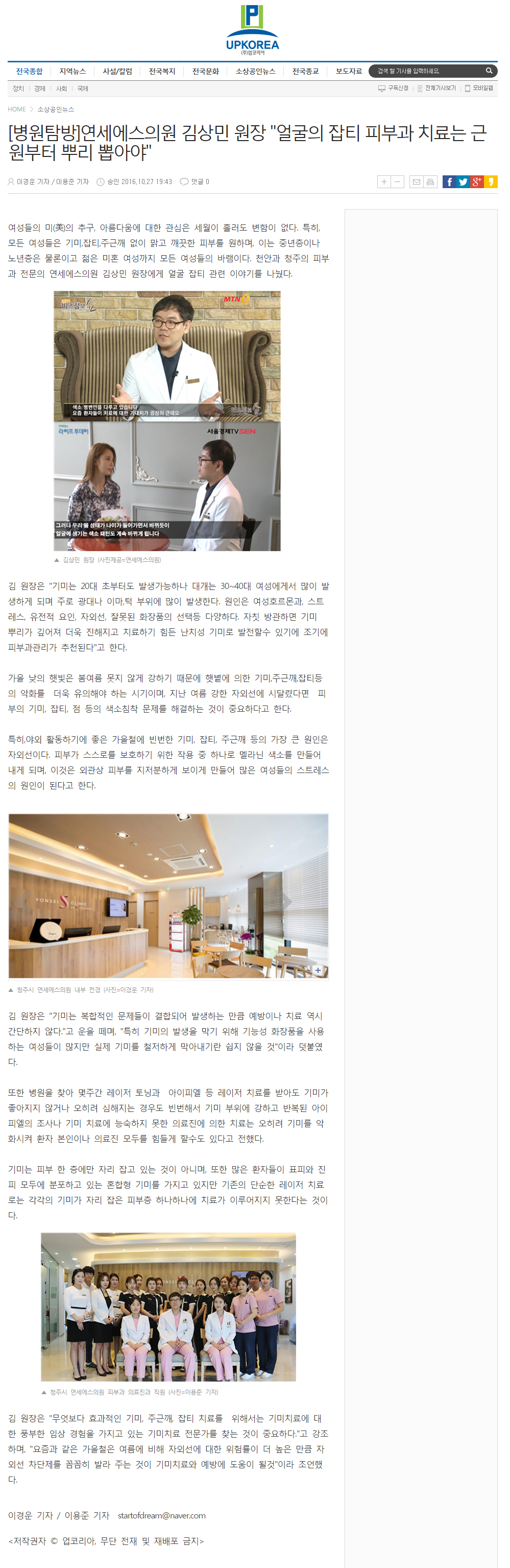 [병원탐방] 연세에스의원 김상민 원장 "얼굴의 잡티 피부과 치료는 근원부터 뿌리 뽑아야"