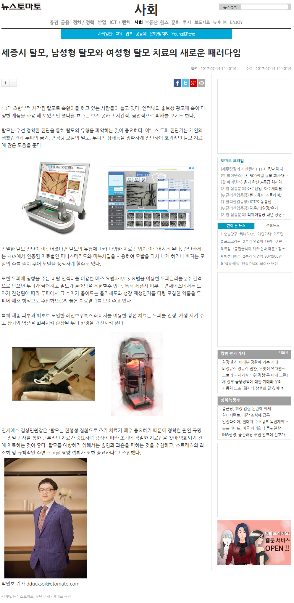 인쇄하기/글자확대.축소 기본 크게 더크게 인쇄 스크랩 목록보기 세종시 탈모, 남성형 탈모와 여성형 탈모 치료의 새로운 패러다임 페이지 정보 작성자연세S클리닉 작성일2017-07-14 16:32:58 조회4,510 댓글0 본문 인쇄하기/글자확대.축소 기본 크게 더크게 인쇄 스크랩 목록보기 이전글 ▲보톡스·필러 부작용, 베인라이트로 해결가능 다음글 ▼세종시 피부과 연세에스 김상민 원장, 2017 미스코리아 대전·충남 심사위원 맡아 댓글목록 등록된 댓글이 없습니다. 이전글 다음글 목록보기