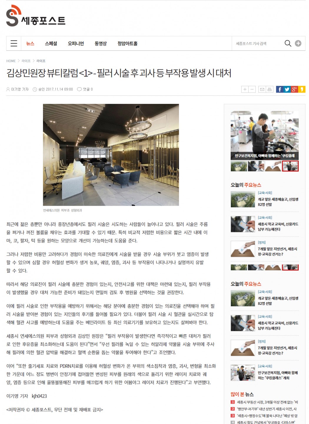 인쇄하기/글자확대.축소 기본 크게 더크게 인쇄 스크랩 목록보기 김상민원장뷰티칼럼<1> 필러 시술 후 괴사등 부작용 발생시 대처 페이지 정보 작성자연세S클리닉 작성일2017-11-14 10:40:11 조회3,785 댓글0 본문 인쇄하기/글자확대.축소 기본 크게 더크게 인쇄 스크랩 목록보기 이전글 ▲세종시 피부과 연세에스의원, 12월 초 확장이전&수능이벤트 다음글 ▼세종시 피부과 연세에스의원, 확장 이전 댓글목록 등록된 댓글이 없습니다. 이전글 다음글 목록보기