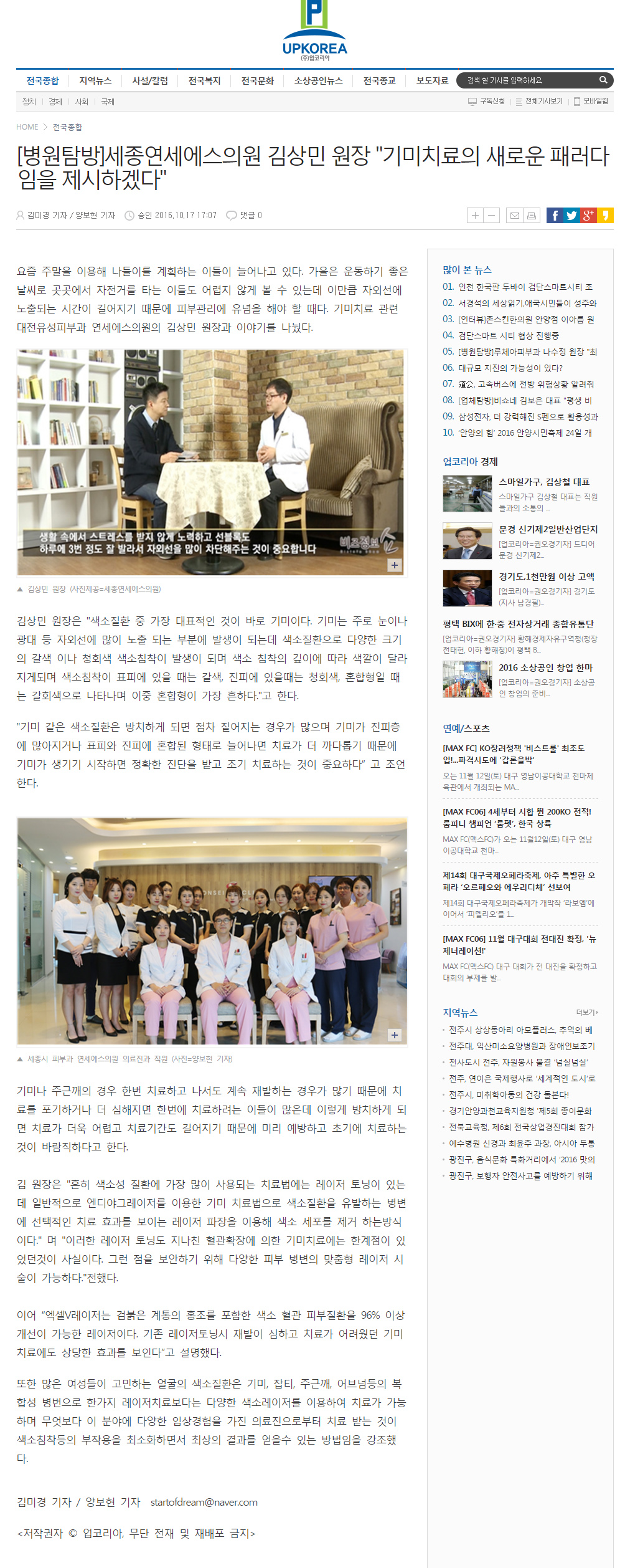 인쇄하기/글자확대.축소 기본 크게 더크게 인쇄 스크랩 목록보기 [병원탐방] 세종연세에스의원 김상민 원장 "기미치료의 새로운 패러다임을 제시하겠다" 페이지 정보 작성자연세S클리닉 작성일2016-10-17 19:26:53 조회3,661 댓글0 본문 인쇄하기/글자확대.축소 기본 크게 더크게 인쇄 스크랩 목록보기 이전글 ▲보톡스, 필러 정품정량 믿어도 될까? 다음글 ▼고객선호도브랜드 의료(보톡스, 필러) 부문 1위 수상 댓글목록 등록된 댓글이 없습니다. 이전글 다음글 목록보기