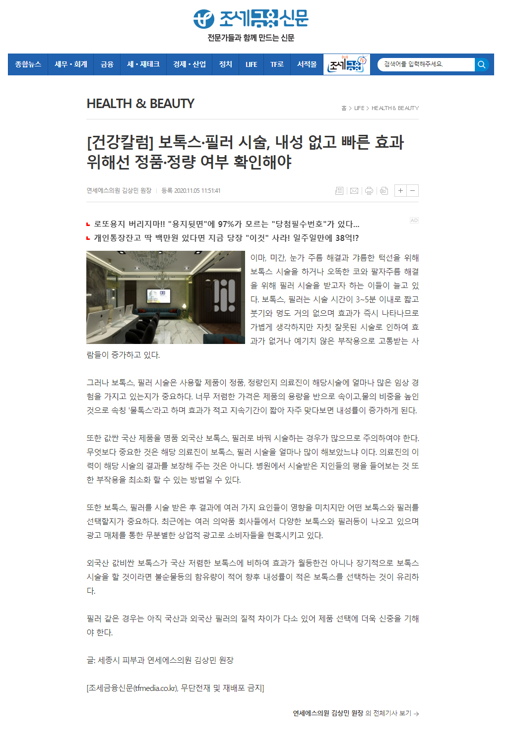 인쇄하기/글자확대.축소 기본 크게 더크게 인쇄 스크랩 목록보기 [건강칼럼] 보톡스, 필러 시술 내성 없고 빠른 효과 위해선 정품,정량 여부 확인해야 페이지 정보 작성자연세S클리닉 작성일2020-11-09 12:21:00 조회3,600 댓글0 본문 인쇄하기/글자확대.축소 기본 크게 더크게 인쇄 스크랩 목록보기 이전글 ▲기미,여드름 치료의 피부과학적 접근 방법 다음글 ▼[SR건강칼럼] 가을철 색소 정확한 피부과 진단이 선행돼야 댓글목록 등록된 댓글이 없습니다. 이전글 다음글 목록보기